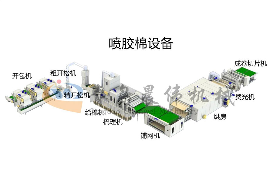 開包機-開松機-振動給棉機-梳理機-鋪網機-烘房-燙光機-成卷切片機